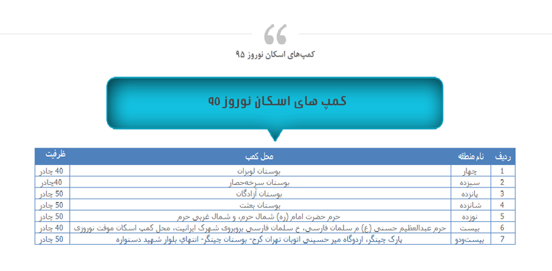 آدرس اسکان نوروزی مسافران در تهران