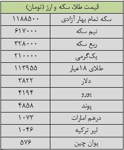 به این ترتیب، امروز در بازار تهران هر قطعه سکه تمام بهار آزادی یک میلیون و ۱۸۸ هزار تومان و ۵۰۰ تومان، نیمسکه ۶۱۷ هزار تومان، ربعسکه ۳۲۸ هزار تومان و سکه یکگرمی ۲۱۰ هزار تومان است.