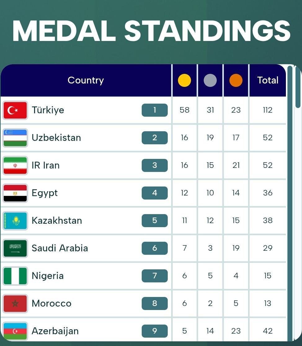 جدول رده‌بندی مدالی بازی‌های همبستگی کشورهای اسلامی ۲۰۲۵/ جایگاه ایران