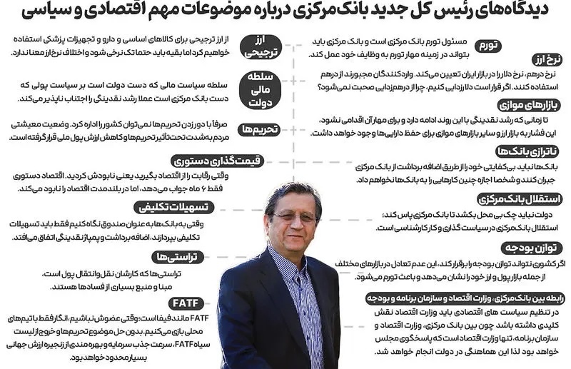 بسوال اصلی این است که همتی چه نگاهی به بازار ارز، پول و شرایط اقتصادی دارد. او در حوزه نرخ ارز، به کاهش شکاف ارزی و حرکت به سمت تکنرخی شدن اعتقاد دارد. همتی بارها تاکید کرده است که وجود چندین نرخ ارز در کشور نادرست است و قیمت ارز باید در قالب یک نرخ واحد و با نظام «شناور مدیریتشده» تعیین شود تا بانک مرکزی بتواند نوسانات را کنترل کند.