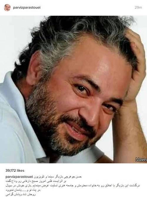پرویز پرستویی در این باره در اینستاگرام نوشت: « درگذشت این بازیگر با اخلاق رو به خانواده محترمش و جامعه هنری تسلیت عرض مینمایم . بازی خوبش در سریال در پناه تو و... یادمان نمیرود.»